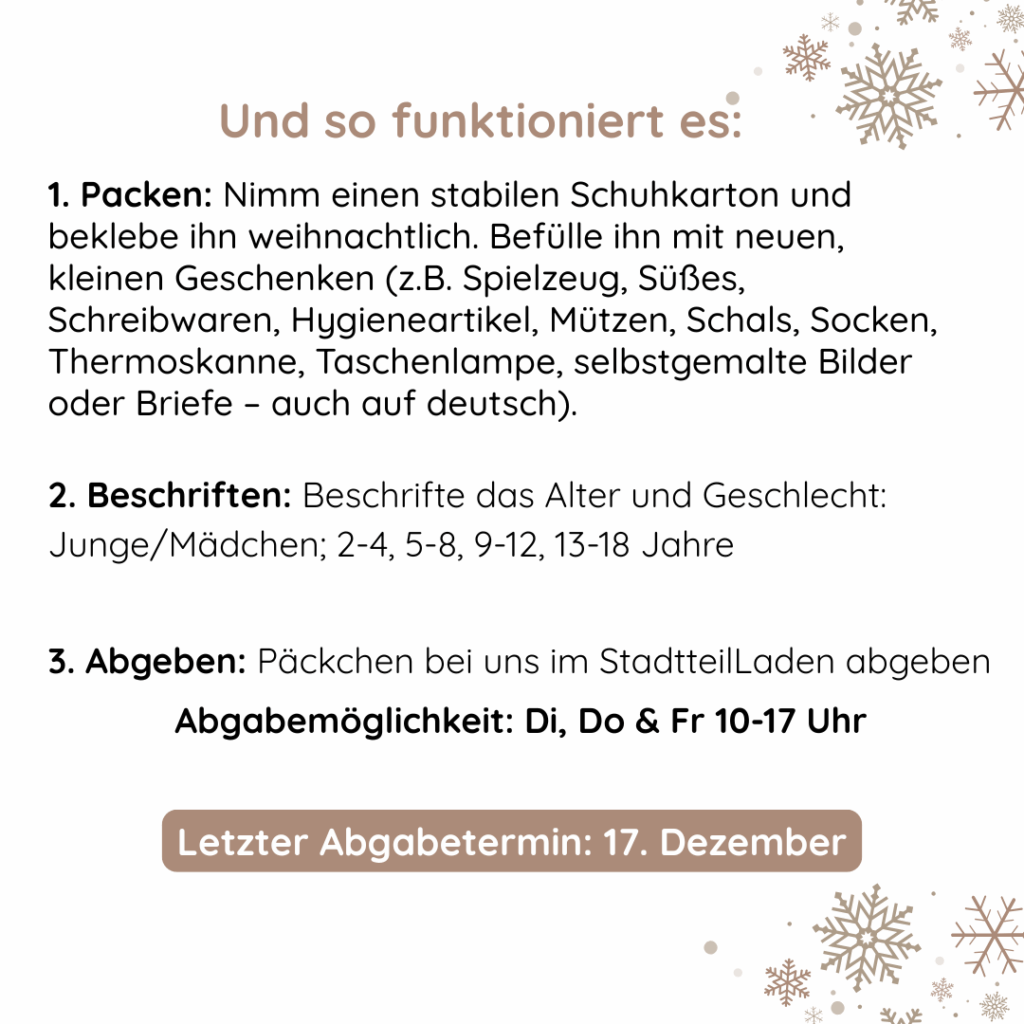 Mittlerweile ist der StadtteilLaden zu einem festen Anlaufpunkt im Viertel geworden und unsere Besucher*innen kommen aus ganz Potsdam zu uns, um an den Angeboten teilzunehmen, oder sich bei uns einzubringen. Besonders dankbar sind wir unseren über 30 Ehrenamtlichen, darunter nach wie vor zahlreiche Gründungsmitglieder, die uns mit großem Engagement unterstützen oder immer noch an Angeboten teilnehmen.