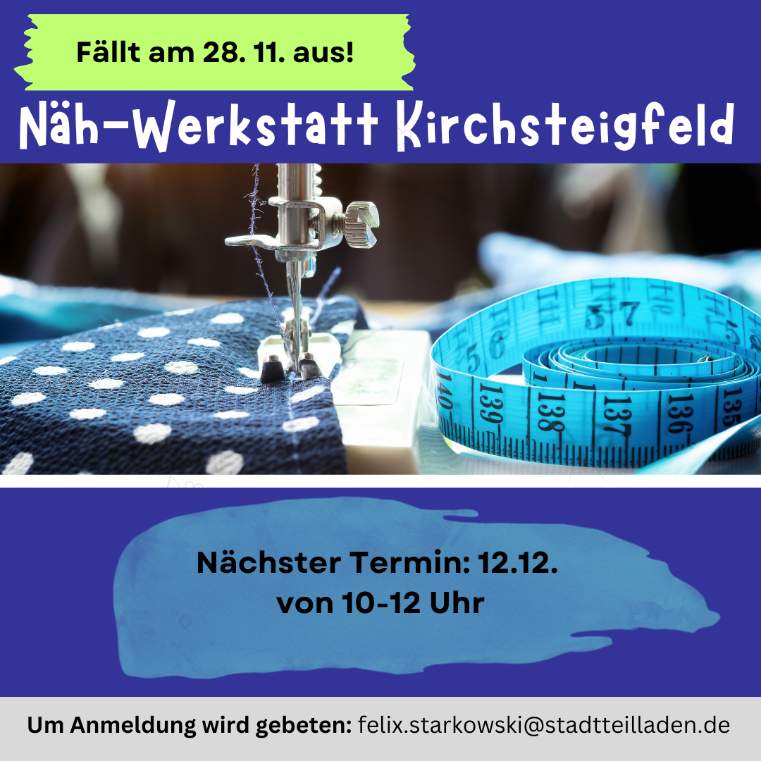 Unsere Näh-Werkstatt fällt am 28.11. aus!