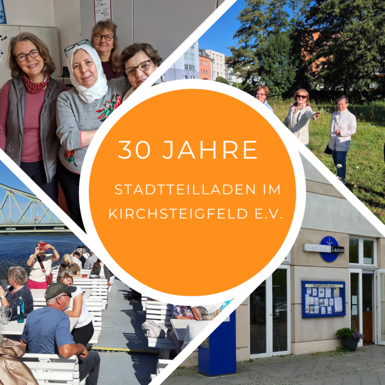 Der StadtteilLaden feiert in diesem Jahr sein 30 jähriges Jubiläum. In den 1990er Jahren entstand im Potsdamer Südosten das Kirchsteigfeld. Parallel zur städtebaulichen Entwicklung setzte sich bereits 1993/1994 eine kleine Gruppe, bestehend aus Bewohnern aus der Region Drewitz und weiteren Interessierten, mit der Notwendigkeit und den Möglichkeiten der sozialen Gestaltung des Stadtteils auseinander. Aus dieser Bewegung gründete sich 1995 der Verein „StadtteilLaden im Kirchsteigfeld e.V.“ und ist seit 1997 zentral am Marktplatz im ökumenischen Gemeindezentrum der Versöhnungskirche im Kirchsteigfeld beheimatet.