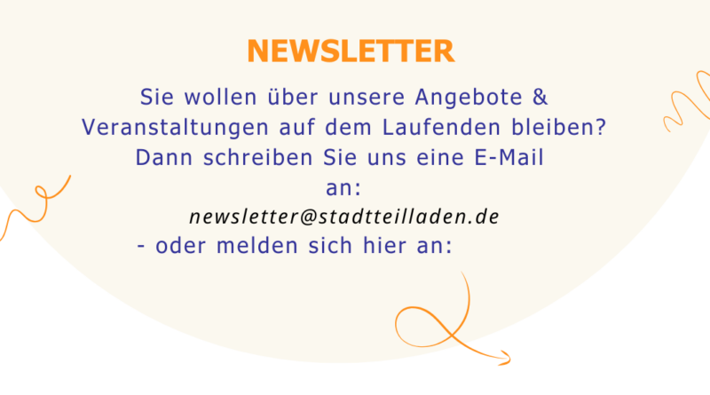 Im StadtteilLaden gibt es viele Menschen, die ehrenamtlich mitarbeiten und die Einrichtung durch ihr großes Engagement unterstützen. Wenn auch Sie Lust haben, sich für Ihren Stadtteil zu engagieren und im StadtteilLaden mitzumachen, dann melden Sie sich bei uns. Wir freuen uns auf Sie und unterstützen auch gerne dabei, wenn Sie eigene Ideen umsetzten möchten.