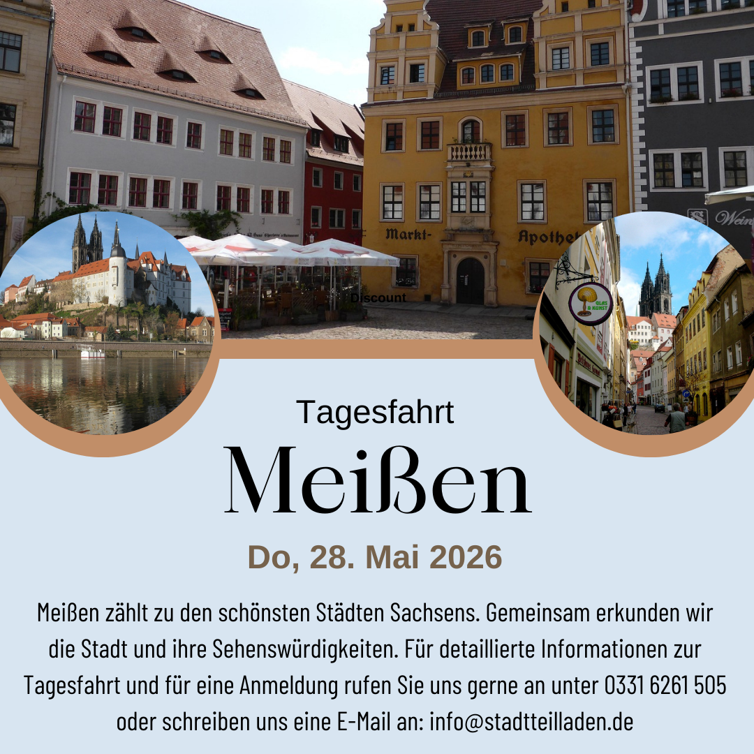 ...für unsere Tagesfajrt nach Meißen. Komm einen Tag mit uns auf Reise und entdecke das hübsche Städtchen.