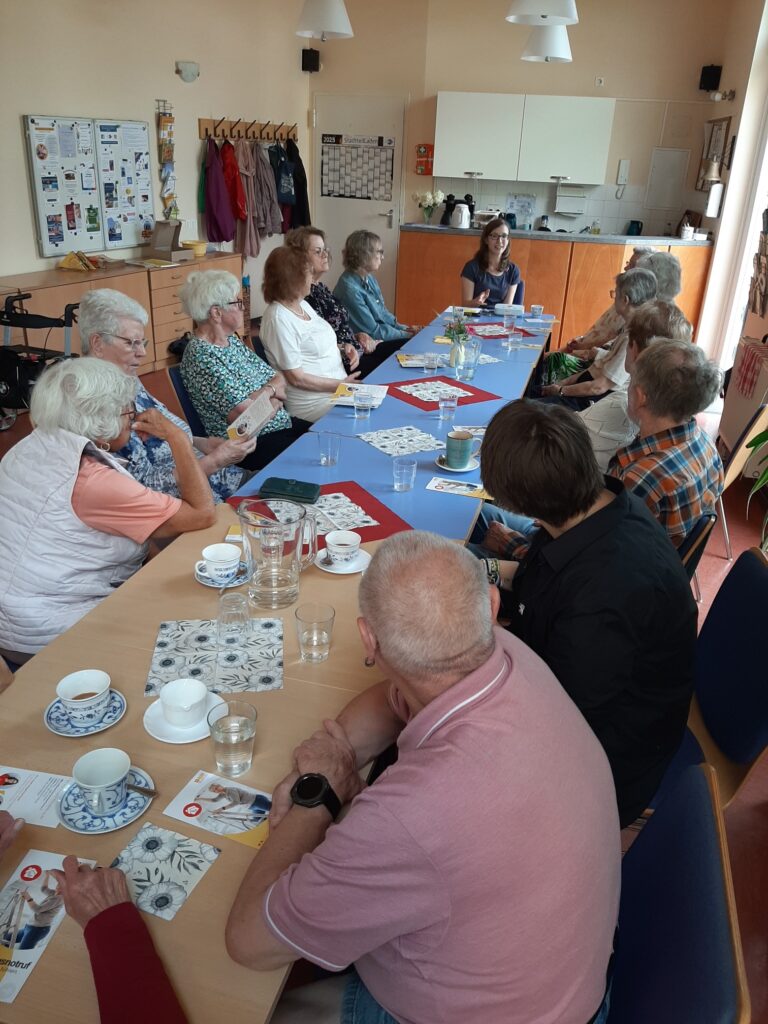 Eva Götze vom ASB Brandenburg stellte uns den Hausnotruf vor. Im Anschluss gab es viele Fragen und einen regen Austausch. Einige Teilnehmerinnen hatten bereits eigene Erfahrungen, die sie in die Diskussion mit einbrachten. Es war für alle ein interessanter Nachmittag, der zum Nachdenken anregte.