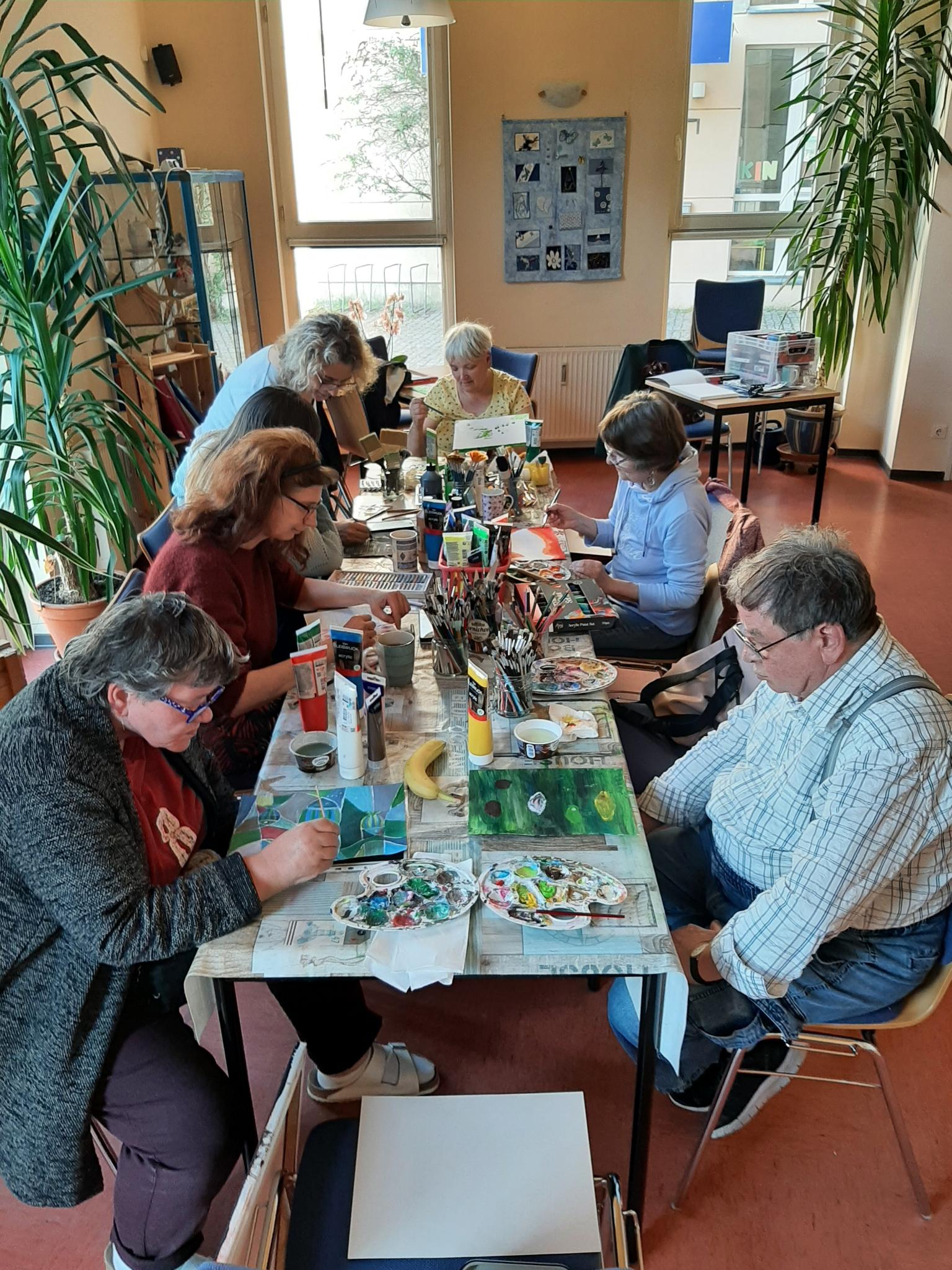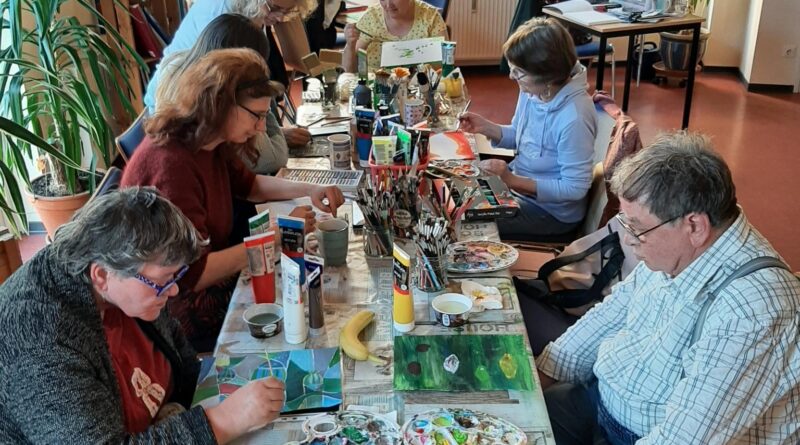 In unserem Offenen Mal-Treff waren die Künstler dieses Mal wieder fleißig. Unter Anleitung der syrischen Künstlerin Aliaa Shaalan wurde fleißig gemalt und Techniken verfeinert. Schaut gerne vorbei- Vorkenntnisse sind nicht erforderlich und Material ist vorhanden.