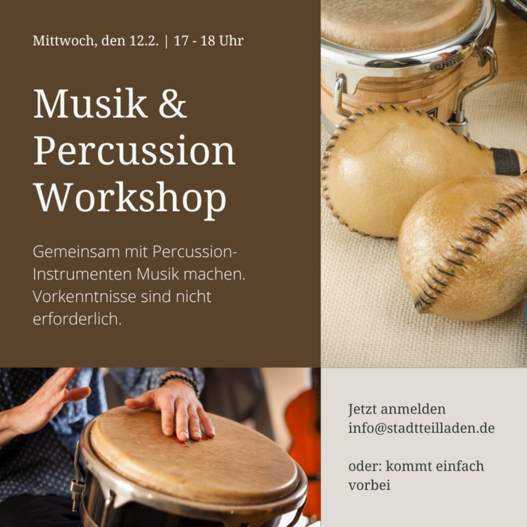 Am Mittwoch, den 12. Februar trifft sich zum ersten Mal die Musik & Perscussion-Gruppe. Gemeinsam wollen wir zukünftige Treffen planen und natürlich auch Musik machen.