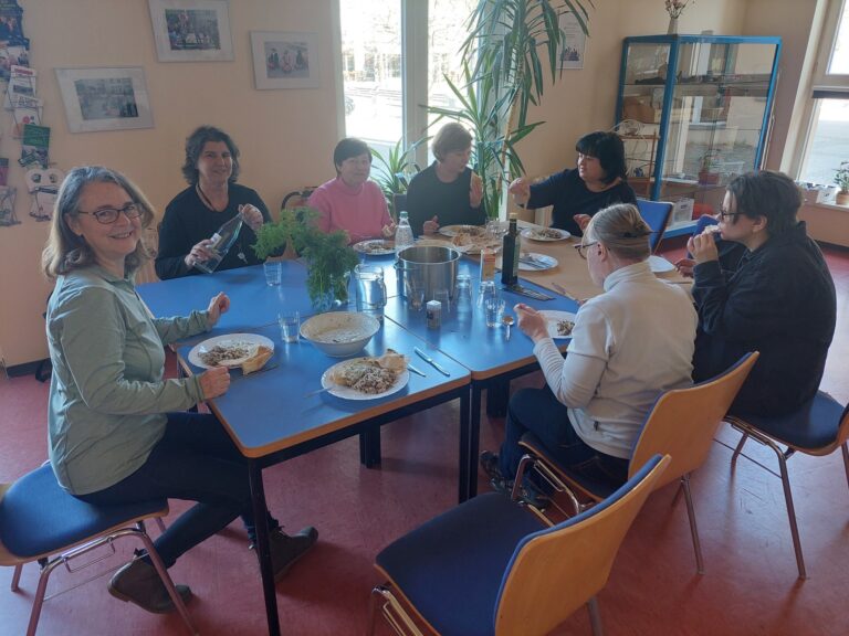 verschiedener Nationalitäten zusammenzubringen. Kochen und essen sind Tätigkeiten, die ohne große Vorkenntnisse geschehen und über sprachliche und kulturelle Grenzen hinaus Gemeinschaft stiften können. Diese Form der Begegnung ist eine gute Gelegenheit, sich über Land und Leute auszutauschen, mehr über kulturelle Vielfalten zu erfahren und kulturelle Besonderheiten kennenzulernen. In dem Projekt „Kochen ohne Grenzen“ können 8-10 alteingesessene Kirchsteigfelder*innen und (Neu)Zugewanderte einmal im Monat ihre Lieblingsrezepte kochen und hinterher an einem bunten Tisch gemeinsam essen. Ziel der Kochtreffs ist es, Menschen verschiedener Kulturen zusammenzubringen und Raum für intensiven Austausch zu schaffen.